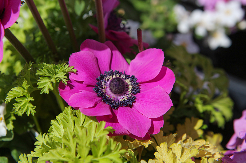 Harmony Orchid Anemone is smothered in stunning semi-double purple buttercup flowers with hot pink overtones and black eyes at the ends of the stems from early spring to mid summer. The flowers are excellent for cutting. Its ferny leaves remain green in colour throughout the season.