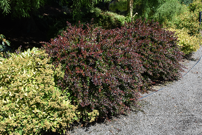 Midnight Ruby Barberry will grow to be about 24 inches tall at maturity, with a spread of 24 inches. It tends to fill out right to the ground and therefore doesn't necessarily require facer plants in front. It grows at a slow rate, and under ideal conditions can be expected to live for approximately 20 years.