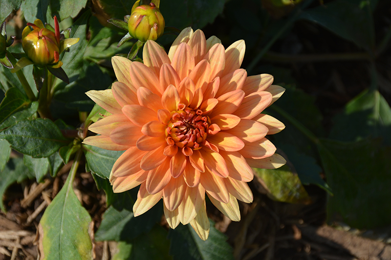 XXL Hidalgo Dahlia features showy double yellow daisy flowers with peach overtones at the ends of the stems from mid to late summer. The flowers are excellent for cutting. Its pointy leaves remain green in colour throughout the season.