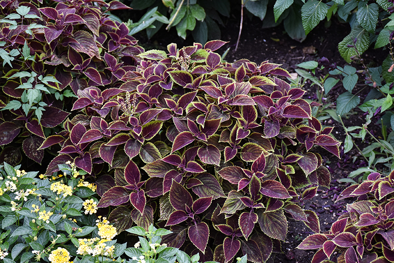 Vino Coleus is an herbaceous annual with an upright spreading habit of growth. Its relatively coarse texture can be used to stand it apart from other garden plants with finer foliage.