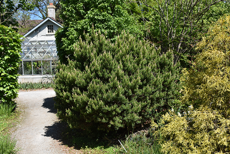 Green Candle Mugo Pine will grow to be about 5 feet tall at maturity, with a spread of 5 feet. It has a low canopy, and is suitable for planting under power lines. It grows at a slow rate, and under ideal conditions can be expected to live for 70 years or more.