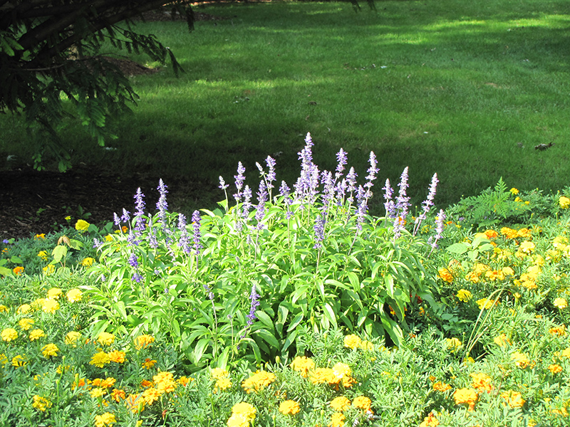 Strata Salvia is an herbaceous annual with an upright spreading habit of growth. Its medium texture blends into the garden, but can always be balanced by a couple of finer or coarser plants for an effective composition.