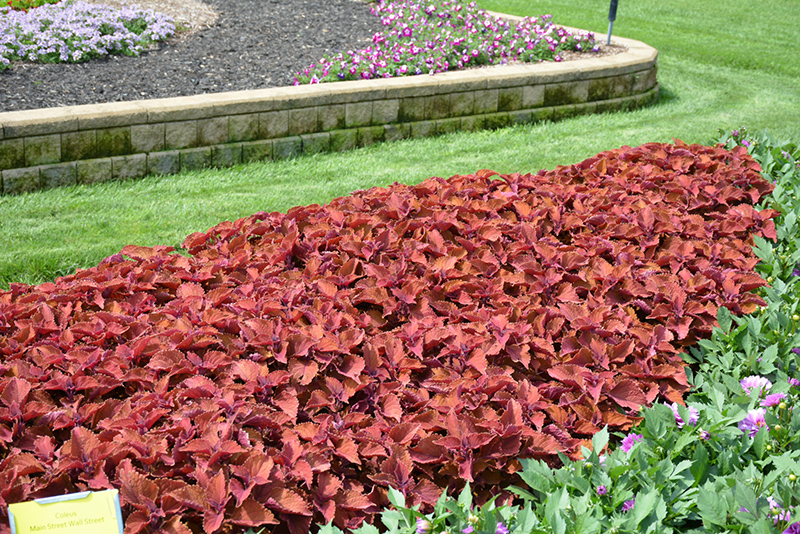 Wall Street Coleus will grow to be about 16 inches tall at maturity, with a spread of 12 inches. When grown in masses or used as a bedding plant, individual plants should be spaced approximately 10 inches apart. Although it's not a true annual, this fast-growing plant can be expected to behave as an annual in our climate if left outdoors over the winter, usually needing replacement the following year. As such, gardeners should take into consideration that it will perform differently than it would in its native habitat.