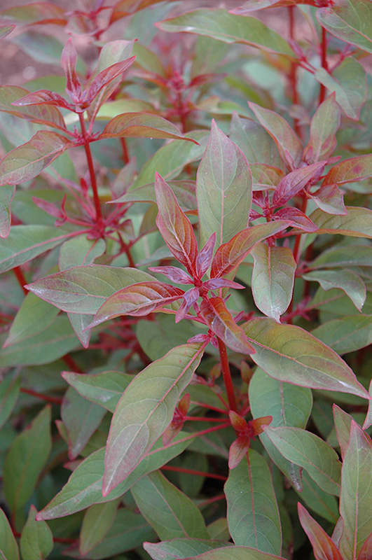 Scarlet Bush features showy cymes of scarlet tubular flowers at the ends of the branches from early summer to mid fall. Its attractive pointy leaves emerge dark red in spring, turning grayish green in colour with pointy red spines. The foliage often turns red in fall. It features an abundance of magnificent plum purple berries in early fall. The red stems can be quite attractive.