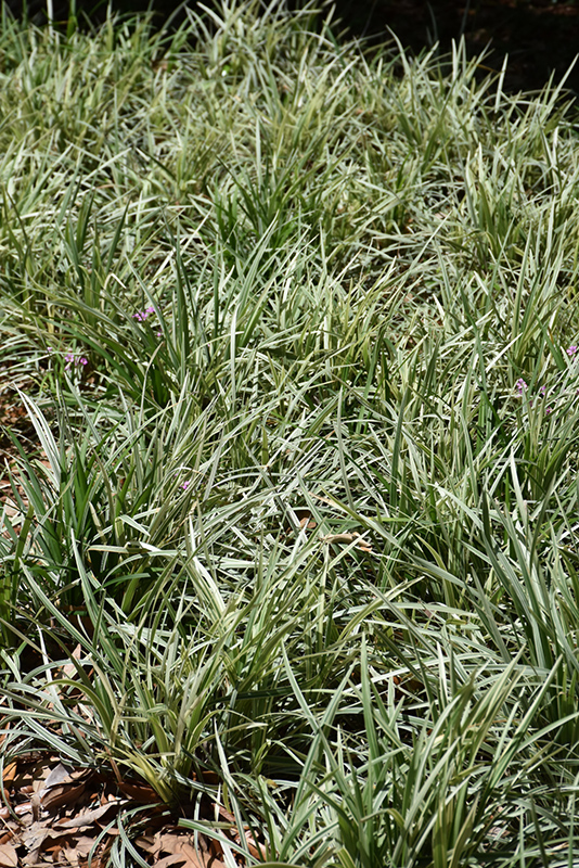 A tufted grass like perennial that features a clump of arching, green and white varigated leaves; a beautiful display of lovely lilac-purple flower spikes; it is best massed as a groundcover or in containers