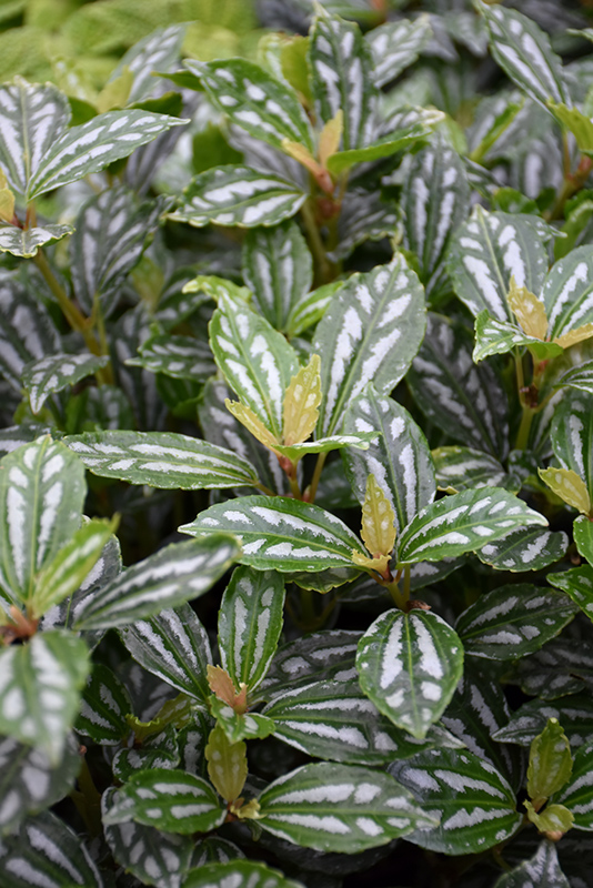 Aluminum Plant will grow to be about 12 inches tall at maturity, with a spread of 10 inches. When grown in masses or used as a bedding plant, individual plants should be spaced approximately 8 inches apart. Its foliage tends to remain dense right to the ground, not requiring facer plants in front. Although it's not a true annual, this plant can be expected to behave as an annual in our climate if left outdoors over the winter, usually needing replacement the following year. As such, gardeners should take into consideration that it will perform differently than it would in its native habitat.