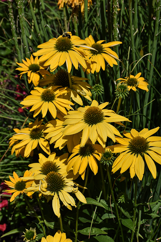 Aloha Coneflower will grow to be about 22 inches tall at maturity extending to 32 inches tall with the flowers, with a spread of 28 inches. Its foliage tends to remain dense right to the ground, not requiring facer plants in front. It grows at a medium rate, and under ideal conditions can be expected to live for approximately 10 years. As an herbaceous perennial, this plant will usually die back to the crown each winter, and will regrow from the base each spring. Be careful not to disturb the crown in late winter when it may not be readily seen!