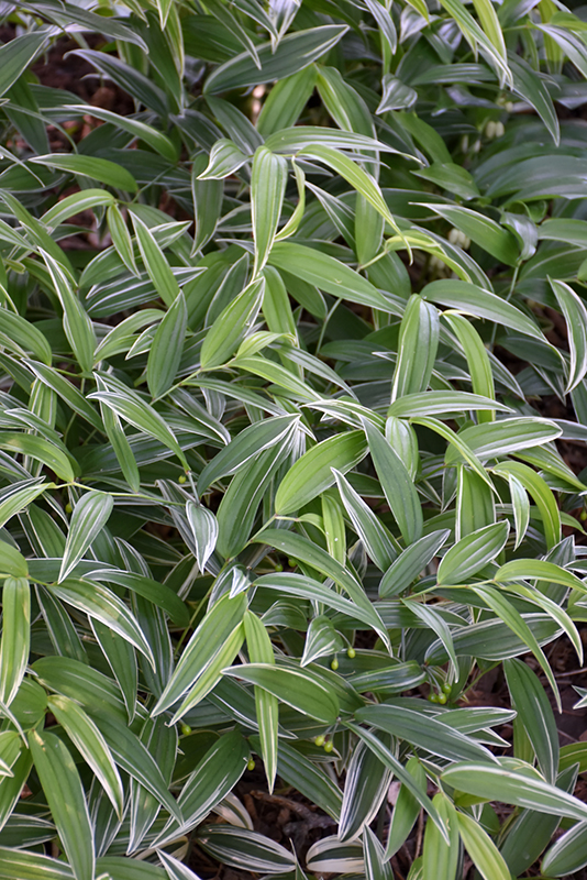 Variegated Japanese Fairy Bells features showy white bell-shaped flowers dangling from the stems from early to mid spring. Its narrow leaves remain green in colour with showy creamy white variegation throughout the season. It produces black berries in late summer.