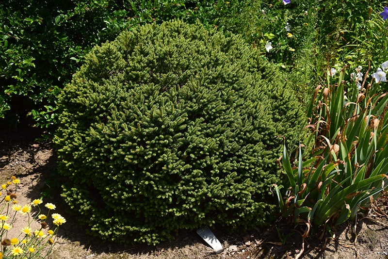Fat Cat Norway Spruce will grow to be about 3 feet tall at maturity, with a spread of 3 feet. It tends to fill out right to the ground and therefore doesn't necessarily require facer plants in front. It grows at a slow rate, and under ideal conditions can be expected to live for 50 years or more.