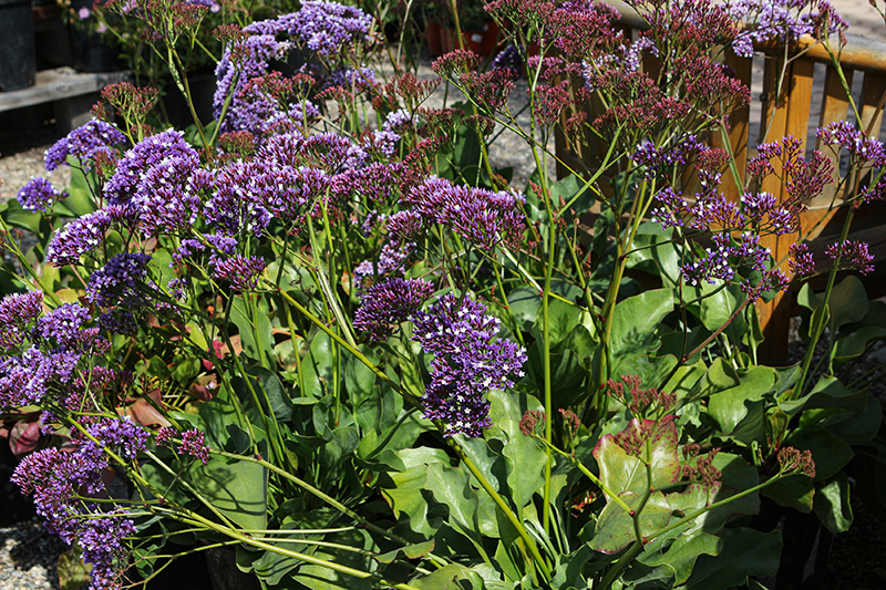 Perez's Sea Lavender will grow to be about 18 inches tall at maturity extending to 3 feet tall with the flowers, with a spread of 24 inches. When grown in masses or used as a bedding plant, individual plants should be spaced approximately 18 inches apart. Its foliage tends to remain dense right to the ground, not requiring facer plants in front. Although it's not a true annual, this plant can be expected to behave as an annual in our climate if left outdoors over the winter, usually needing replacement the following year. As such, gardeners should take into consideration that it will perform differently than it would in its native habitat.