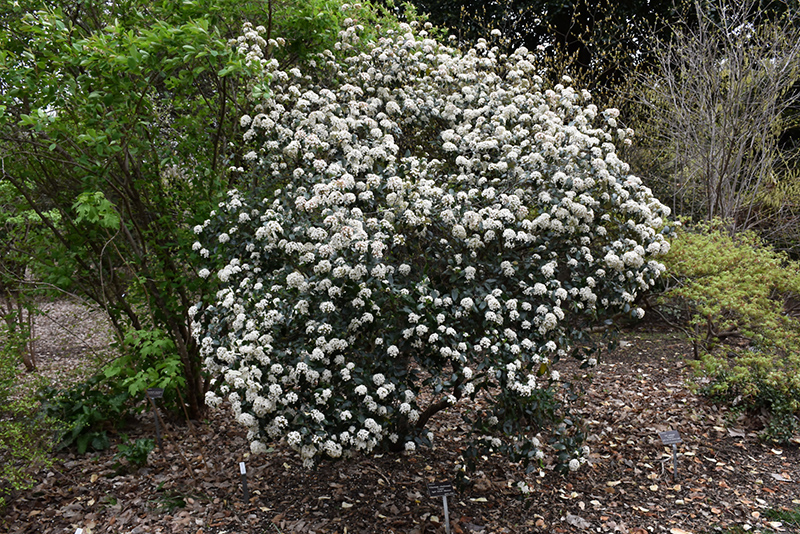 A mounded and spreading broadleaf evergreen shrub featuring white ball-shaped clusters of flowers which open from red buds in early spring, tidy the rest of the year; an ideal specimen or border shrub, always refined and elegant