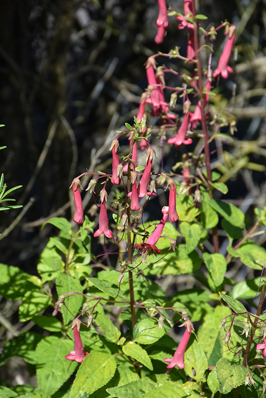 A striking variety featuring nodding coral-red flowers above interesting variegated yellow foliage that is spotted with green; very attractive to hummingbirds; a dense self supporting round shrub that can be treated as a tender perennial in colder areas