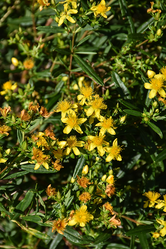 Kalm's St. John's Wort is smothered in stunning yellow flowers along the branches in mid summer. The flowers are excellent for cutting. It has bluish-green deciduous foliage. The narrow leaves do not develop any appreciable fall colour.