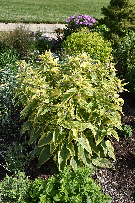 Axminster Gold Russian Comfrey is a fine choice for the garden, but it is also a good selection for planting in outdoor pots and containers. With its upright habit of growth, it is best suited for use as a 'thriller' in the 'spiller-thriller-filler' container combination; plant it near the center of the pot, surrounded by smaller plants and those that spill over the edges. Note that when growing plants in outdoor containers and baskets, they may require more frequent waterings than they would in the yard or garden. Be aware that in our climate, most plants cannot be expected to survive the winter if left in containers outdoors, and this plant is no exception. Contact our experts for more information on how to protect it over the winter months.