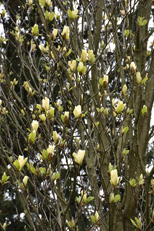 A hybrid magnolia selected for its large, deep yellow cup-shaped flowers in spring, and spire-like columnar habit of growth; flowers appear late, after danger of frost is past; an excellent specimen for tight spaces and smaller home gardens