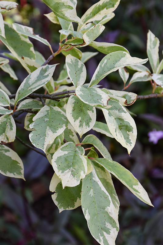A lovely variegated variety producing bold cream and white coloring in summer turning hot pink and scarlet in fall; pyramidal habit with strong branching; needs moist, organic, acidic soils, intolerant of urban pollution