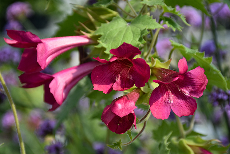 This lovely, fast growing variety can be trained up trellises, cascaded over garden walls, or spill over containers or baskets; showy wine-red tubular flowers bloom steadily from spring to fall; a tremendous garden or patio accent plant