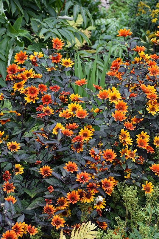 Bleeding Hearts False Sunflower has masses of beautiful red daisy flowers with orange overtones, brick red eyes and yellow tips at the ends of the stems from early summer to mid fall, which are most effective when planted in groupings. The flowers are excellent for cutting. Its serrated oval leaves emerge green in spring, turning dark green in colour with showy deep purple variegation throughout the season. The deep purple stems can be quite attractive.
