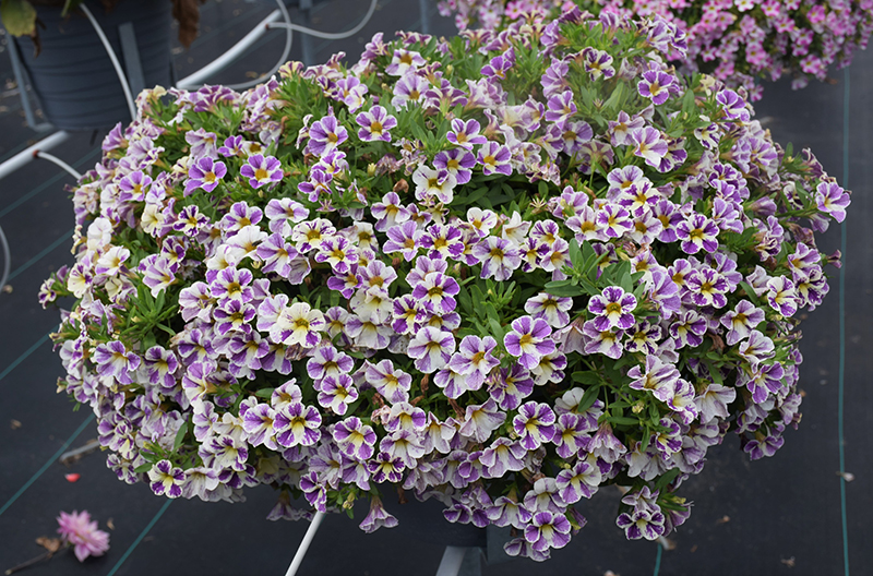 Candy Shop™ Grape Splash Calibrachoa is a fine choice for the garden, but it is also a good selection for planting in outdoor containers and hanging baskets. It is often used as a 'filler' in the 'spiller-thriller-filler' container combination, providing a mass of flowers against which the thriller plants stand out. Note that when growing plants in outdoor containers and baskets, they may require more frequent waterings than they would in the yard or garden.