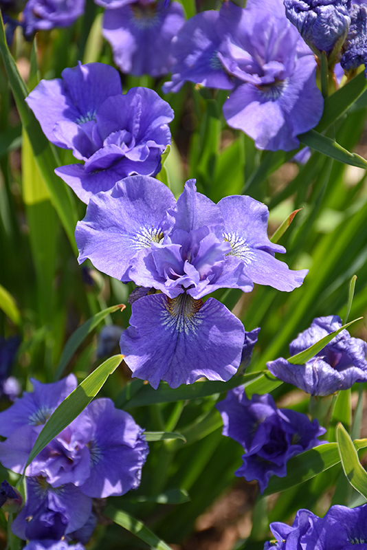 Double Standard Siberian Iris has masses of beautiful double blue flag-like flowers with violet overtones, gold throats and a white flare at the ends of the stems from late spring to early summer, which are most effective when planted in groupings. The flowers are excellent for cutting. Its sword-like leaves remain green in colour throughout the season.