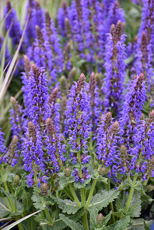 Sallyrosa™ April Night Meadow Sage has masses of beautiful spikes of blue flowers with violet overtones and brick red calyces rising above the foliage from mid spring to early fall, which emerge from distinctive purple flower buds, and which are most effective when planted in groupings. The flowers are excellent for cutting. Its fragrant narrow leaves remain grayish green in colour throughout the season.