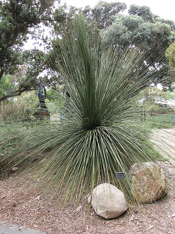 This stunning plant bears extremely narrow blue-green leaves that radiate symmetrically from a large woody trunk that forms over time; tall spikes of white flowers from reddish buds; good for hot, dry sites; great for borders, patios and containers