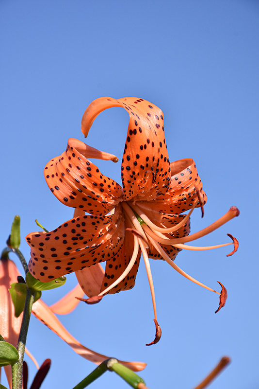 Tiger Lily will grow to be about 4 feet tall at maturity, with a spread of 24 inches. When grown in masses or used as a bedding plant, individual plants should be spaced approximately 18 inches apart. It tends to be leggy, with a typical clearance of 1 foot from the ground, and should be underplanted with lower-growing perennials. The flower stalks can be weak and so it may require staking in exposed sites or excessively rich soils. It grows at a fast rate, and under ideal conditions can be expected to live for approximately 10 years. As an herbaceous perennial, this plant will usually die back to the crown each winter, and will regrow from the base each spring. Be careful not to disturb the crown in late winter when it may not be readily seen!