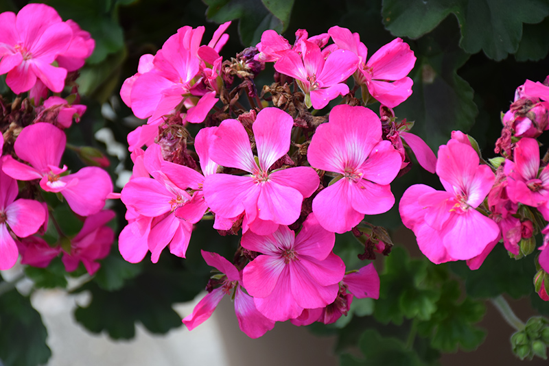 Calliope® Medium Dark Pink Geranium is a fine choice for the garden, but it is also a good selection for planting in outdoor containers and hanging baskets. It is often used as a 'filler' in the 'spiller-thriller-filler' container combination, providing a mass of flowers against which the larger thriller plants stand out. Note that when growing plants in outdoor containers and baskets, they may require more frequent waterings than they would in the yard or garden.