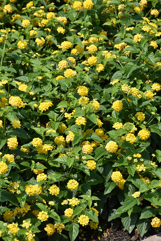 Lucky™ Yellow Lantana will grow to be about 14 inches tall at maturity, with a spread of 14 inches. When grown in masses or used as a bedding plant, individual plants should be spaced approximately 12 inches apart. Although it's not a true annual, this fast-growing plant can be expected to behave as an annual in our climate if left outdoors over the winter, usually needing replacement the following year. As such, gardeners should take into consideration that it will perform differently than it would in its native habitat.
