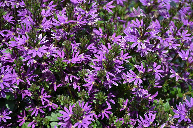 Surdiva® Purple Fan Flower will grow to be about 10 inches tall at maturity, with a spread of 24 inches. When grown in masses or used as a bedding plant, individual plants should be spaced approximately 18 inches apart. Its foliage tends to remain low and dense right to the ground. This fast-growing annual will normally live for one full growing season, needing replacement the following year.