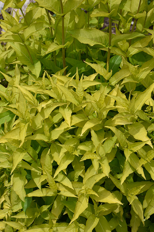 Honeybee™ Bush Honeysuckle features showy panicles of yellow trumpet-shaped flowers along the branches from early summer to early fall. It has attractive gold foliage with hints of light green which emerges yellow in spring. The pointy leaves are highly ornamental and turn outstanding shades of coppery-bronze and in the fall.