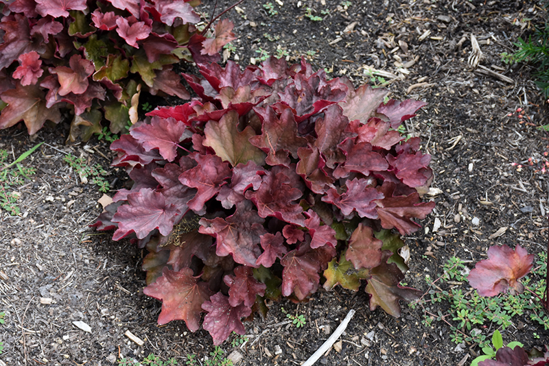 Carnival Burgundy Blast Coral Bells will grow to be about 12 inches tall at maturity, with a spread of 14 inches. When grown in masses or used as a bedding plant, individual plants should be spaced approximately 12 inches apart. Its foliage tends to remain dense right to the ground, not requiring facer plants in front. It grows at a medium rate, and under ideal conditions can be expected to live for approximately 10 years. As an evegreen perennial, this plant will typically keep its form and foliage year-round.