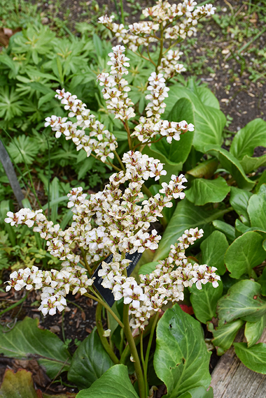 Bressingham White Bergenia will grow to be about 12 inches tall at maturity, with a spread of 12 inches. Its foliage tends to remain dense right to the ground, not requiring facer plants in front. It grows at a medium rate, and under ideal conditions can be expected to live for approximately 10 years. As an evegreen perennial, this plant will typically keep its form and foliage year-round.
