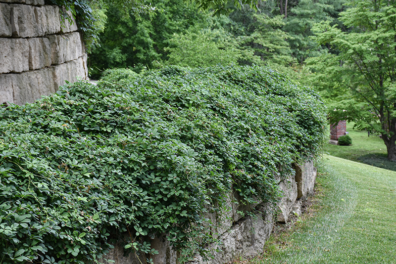 Fiveleaf Akebia will grow to be about 30 feet tall at maturity, with a spread of 24 inches. As a climbing vine, it tends to be leggy near the base and should be underplanted with low-growing facer plants. It should be planted near a fence, trellis or other landscape structure where it can be trained to grow upwards on it, or allowed to trail off a retaining wall or slope. It grows at a fast rate, and under ideal conditions can be expected to live for approximately 20 years.