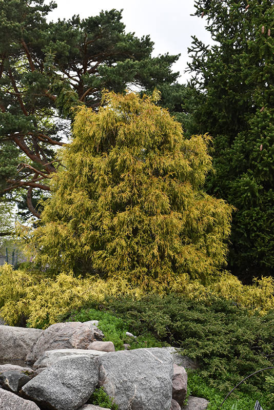 King's Gold Falsecypress is a dwarf conifer which is primarily valued in the landscape or garden for its interestingly mounded form. It has attractive gold evergreen foliage. The threadlike sprays of foliage are highly ornamental and turn yellow in the fall, which persists throughout the winter.