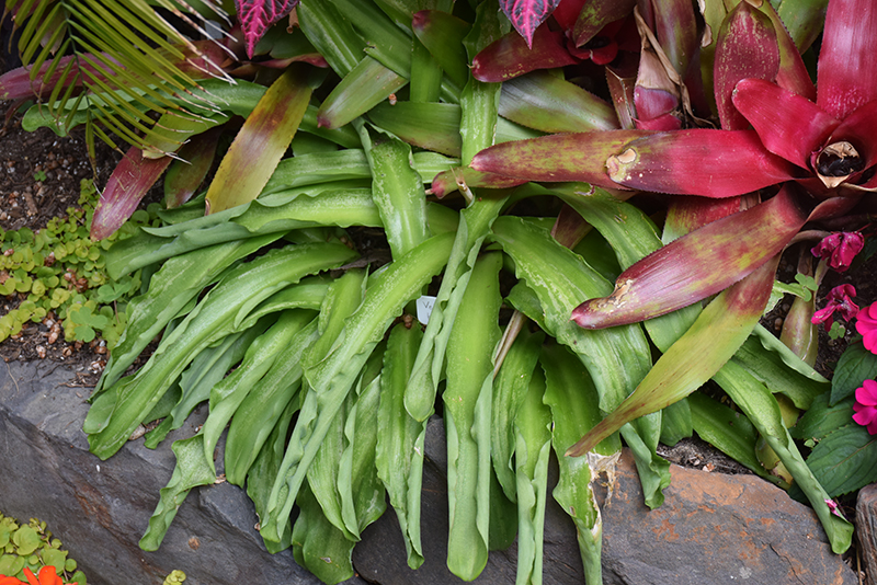 Dramatic rose-pink bottlebrush type flowers rise in winter from a rosette of broad, strap-like glossy foliage that dies back in summer; a brilliant border or container plant for winter color; reduce moisture after blooming; divide when dormant