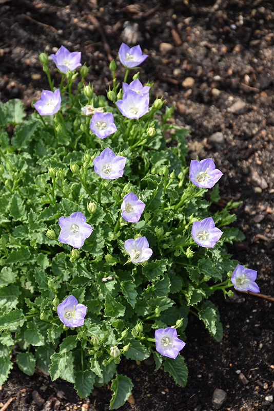 Mini Marvels™ Twilight Bellflower will grow to be only 6 inches tall at maturity, with a spread of 12 inches. Its foliage tends to remain low and dense right to the ground. It grows at a fast rate, and under ideal conditions can be expected to live for approximately 5 years. As an herbaceous perennial, this plant will usually die back to the crown each winter, and will regrow from the base each spring. Be careful not to disturb the crown in late winter when it may not be readily seen!