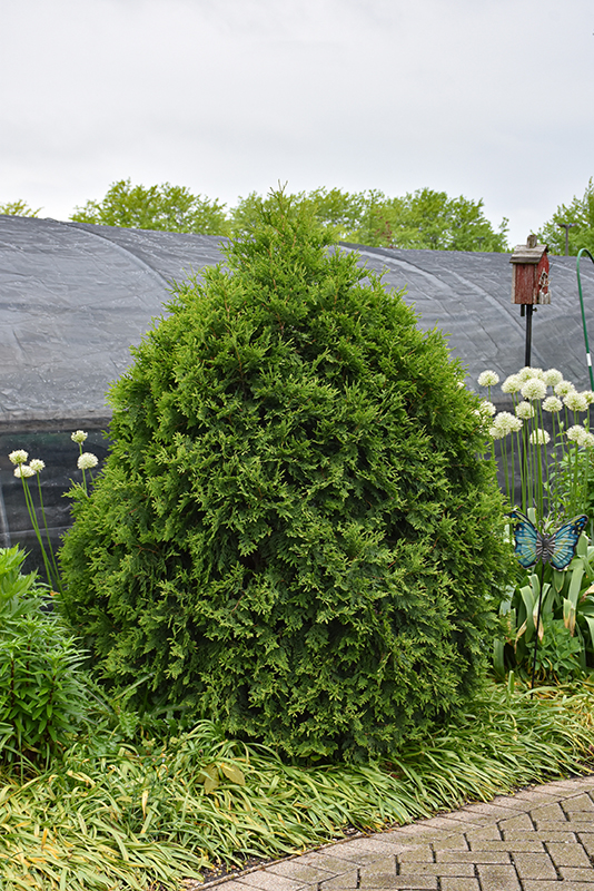 Cheer Drops® Arborvitae is a dwarf conifer which is primarily valued in the landscape for its distinctively pyramidal habit of growth. It has emerald green evergreen foliage. The scale-like sprays of foliage remain emerald green throughout the winter.