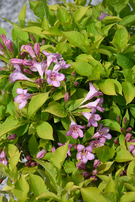 Snippet Lime® Reblooming Weigela will grow to be about 24 inches tall at maturity, with a spread of 24 inches. It tends to fill out right to the ground and therefore doesn't necessarily require facer plants in front. It grows at a medium rate, and under ideal conditions can be expected to live for approximately 30 years.