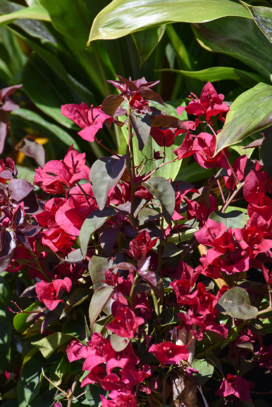Burgundy Queen® Bougainvillea will grow to be about 20 feet tall at maturity, with a spread of 24 inches. As a climbing vine, it should either be planted near a fence, trellis or other landscape structure where it can be trained to grow upwards on it, or allowed to trail off a retaining wall or slope. Although it's not a true annual, this fast-growing plant can be expected to behave as an annual in our climate if left outdoors over the winter, usually needing replacement the following year. As such, gardeners should take into consideration that it will perform differently than it would in its native habitat.