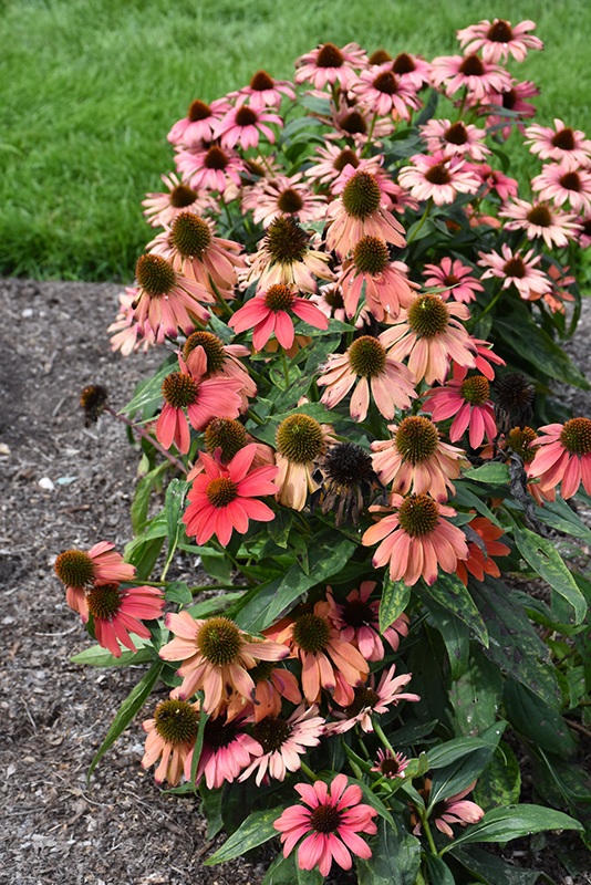 A strong yet compact plant, presenting large, coral pink blooms with coppery-orange center cones; ideal for borders, containers or fresh-cut flower arrangements; attracts beautiful butterflies to the garden; use in naturalized areas