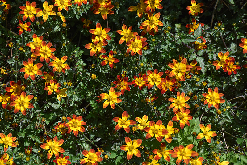 Bee Happy™ Red Bidens will grow to be about 10 inches tall at maturity extending to 14 inches tall with the flowers, with a spread of 24 inches. When grown in masses or used as a bedding plant, individual plants should be spaced approximately 16 inches apart. Its foliage tends to remain low and dense right to the ground. Although it's not a true annual, this fast-growing plant can be expected to behave as an annual in our climate if left outdoors over the winter, usually needing replacement the following year. As such, gardeners should take into consideration that it will perform differently than it would in its native habitat.