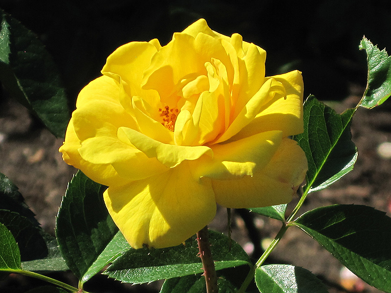 Rich, golden yellow colored blooms appear throughout the season on a low bushy shrub full of dark green, glossy foliage; mild fruity fragrance; well suited for landscaping, containers, or a flowering hedge