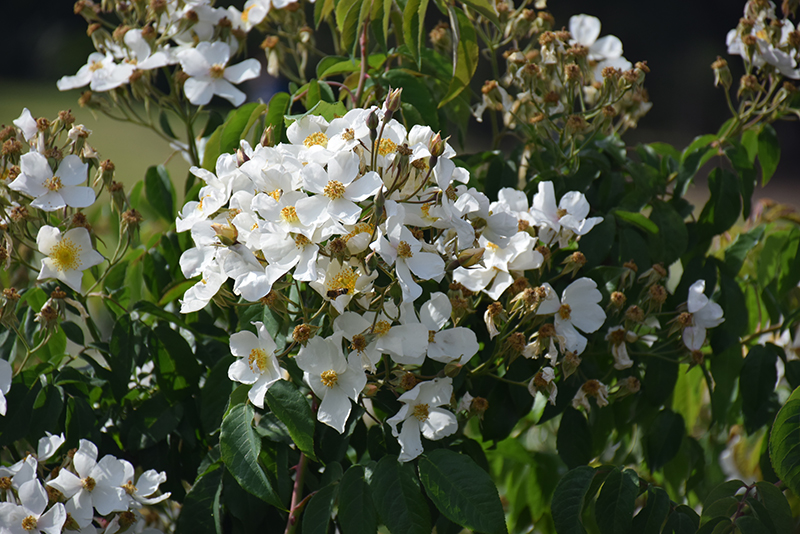 A large-growing hardy shrub rose, which produces an abundance of single light pink flowers blooming from summer through fall; tall, upright habit, great for hedges or trained to climb on trellises; dreamy fragrance; suitable for containers
