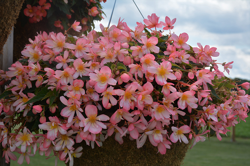 Waterfall® Angel Soft Pink Begonia is an herbaceous annual with a trailing habit of growth, eventually spilling over the edges of hanging baskets and containers. Its medium texture blends into the garden, but can always be balanced by a couple of finer or coarser plants for an effective composition.
