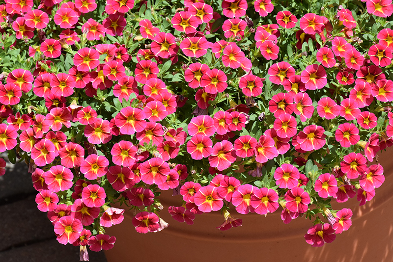 MiniFamous® Neo Red Hawaii Calibrachoa is a fine choice for the garden, but it is also a good selection for planting in outdoor containers and hanging baskets. Because of its trailing habit of growth, it is ideally suited for use as a 'spiller' in the 'spiller-thriller-filler' container combination; plant it near the edges where it can spill gracefully over the pot. Note that when growing plants in outdoor containers and baskets, they may require more frequent waterings than they would in the yard or garden.