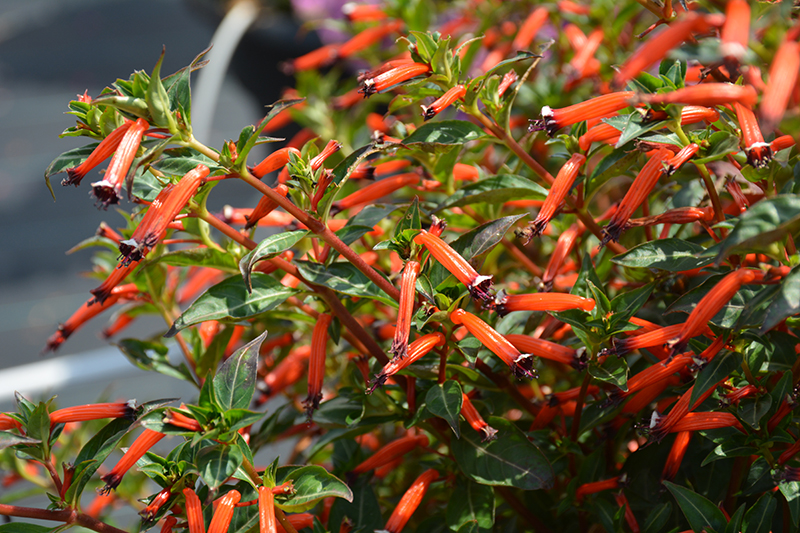 Small, freely branching shrub or subshrub with vibrant orange tubular flowers that open to a star shape; flowers year round in warmer climates; great for bedding, shrub borders, and containers