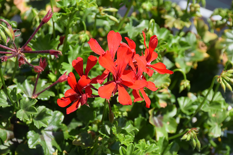 Cascade® Dark Red Geranium will grow to be about 14 inches tall at maturity, with a spread of 24 inches. When grown in masses or used as a bedding plant, individual plants should be spaced approximately 18 inches apart. Its foliage tends to remain dense right to the ground, not requiring facer plants in front. Although it's not a true annual, this fast-growing plant can be expected to behave as an annual in our climate if left outdoors over the winter, usually needing replacement the following year. As such, gardeners should take into consideration that it will perform differently than it would in its native habitat.