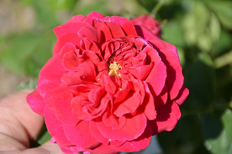 A rather shrubby variety with a bushy habit; elegant crimson-red double blooms are gently nodding over deep green, glossy foliage; strong, old rose fragrance; a stunning choice for hedges and borders; blooms in flushes throughout the season
