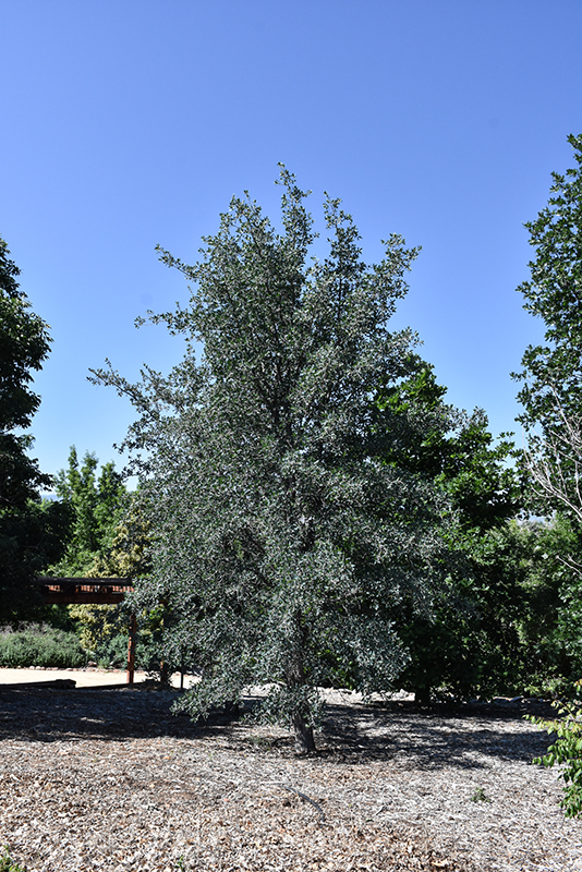 A medium-sized shade tree with a short trunk and a broad rounded habit; sturdy, crooked branches present oval, shallowly lobed, bluish-green leaves; best in large landscapes; a California native that is slow growing, and is fall and drought deciduous